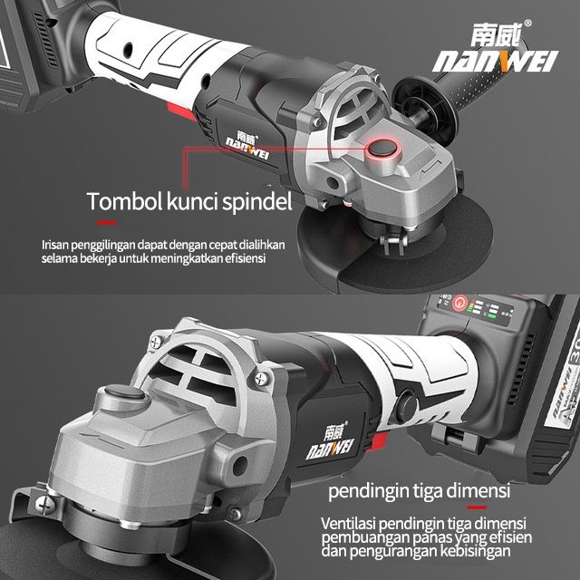 Mesin Gerinda Tangan Nanwei Brushless Angle Grinder Cordless bat-erai dia-mond Alat pemo-tong Listrik