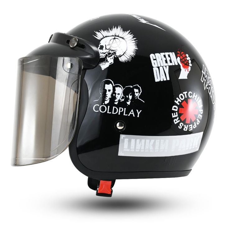 Helm Bogo Retro Motif One Piece Helem Pria Wanita SNI Helm motor Kaca Datar