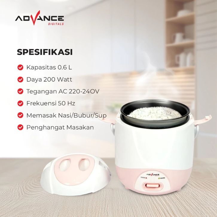 Rice Cooker Elektrik Penanak Nasi Multifungs Pemasak Nasi 0.6 L Garansi Resmi 1 Tahun