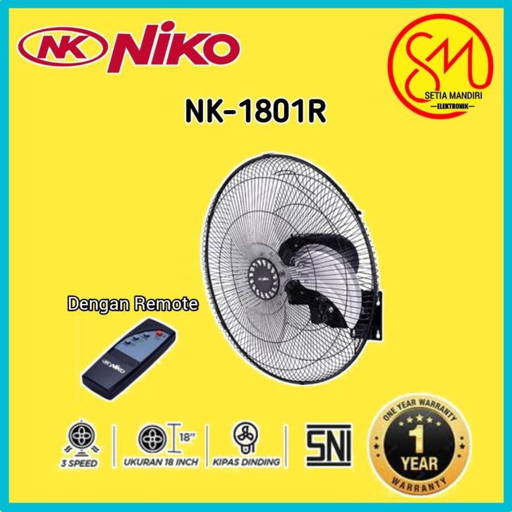 Kipas Angin Dinding Niko NK1801R Wall Fan WIth Remote Control 18 Inch