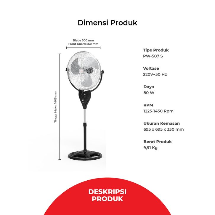READY MASPION WALL FAN / KIPAS ANGIN PW507 S / PW 507 S / PW-507 S 20 INCH GARANSI RESMI