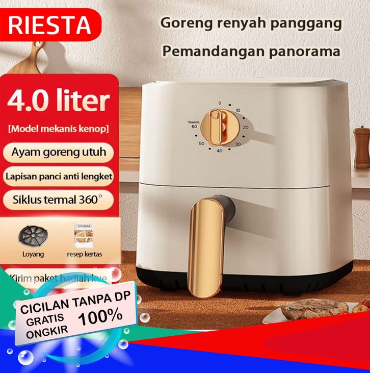 Air Fryer Low Watt 4L Anti Lengket, Mudah Dibersihkan, Siklus Penggorengan Sehat 360°