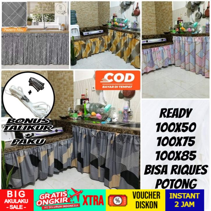 PROMO Gorden Kolong Hordeng Kolong Dapur Minimalis Bahan Katun Premium Bisa Costum Potong Tinggi Dan BAHAN PREMIUM