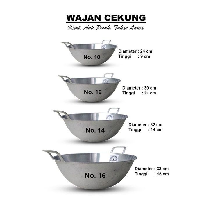 WAJAN KUALI NO 10 11 12 13 14CM CEKUNG ANTI LENGKET CAP GAJAH PENGGORENGAN