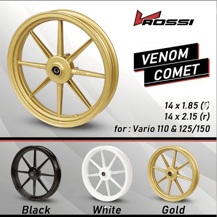 Velg Vrossi/V Rossi Venom Comet Palang 8 Ring 14 185/215 Vario 110 125 150 Beat FI Scoopy Spacy New/Old Genio Mio M3 Z F