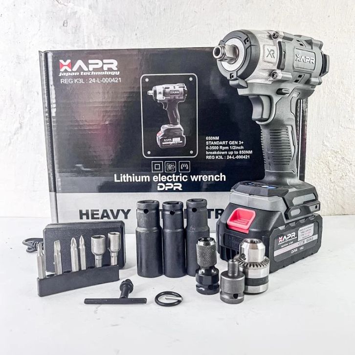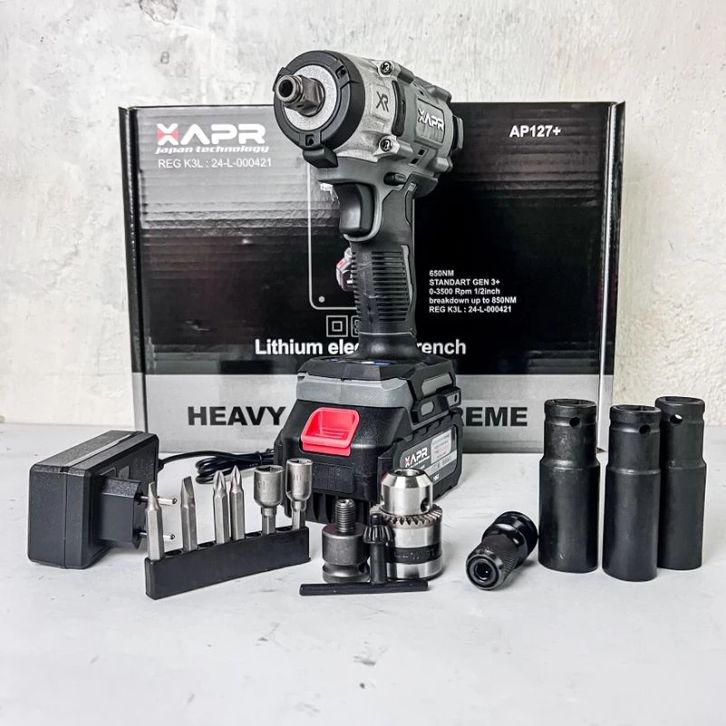 APR JAPAN BOR IMPACT WRENCH BATERAI 650NM 88VF 1 BATERAI AP127+ PEMBUKA BAUT
