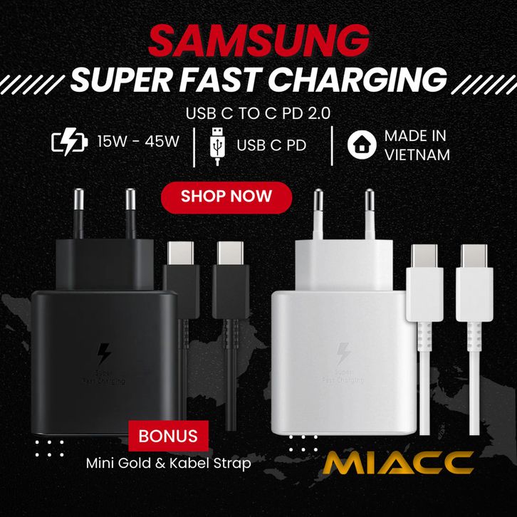 CHARGER SAMSUNG SUPER FAST CHARGING TYPE C S8 S9 Note 10 A50 A70 A72 A32 M31 A51 A52 S20 S21 25W 45W