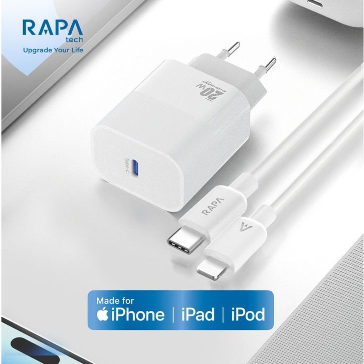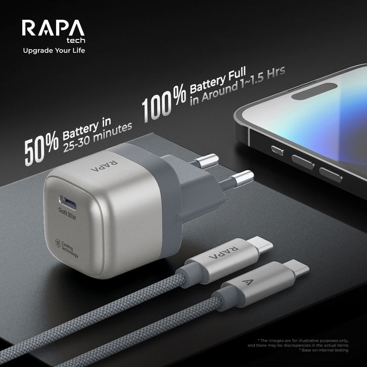 RAPAtech Power II Charger for iPhone 11 12 13 14 15 16 17 PD 20W/30W/45W MFi Kabel C to Lightning DC6064 Charger iPhone