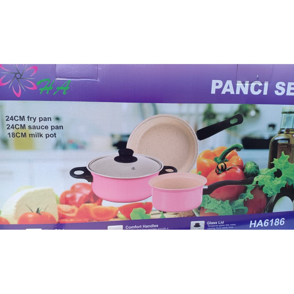 Panci Wajan Set Anti Lengket Isi 3 Pcs Plus 1 Tutup Kaca
