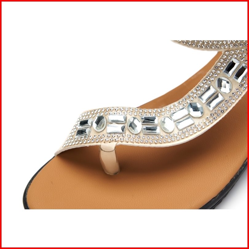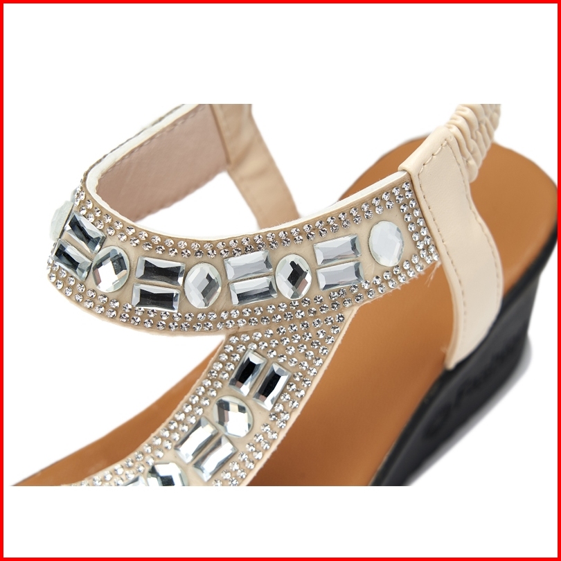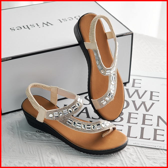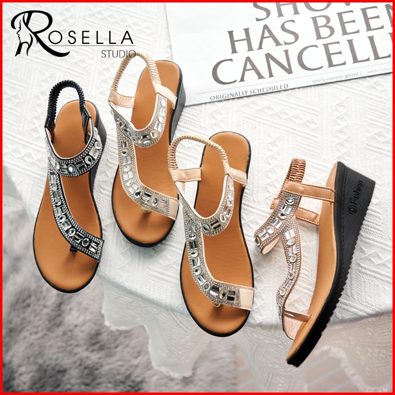 Sandal Berlian Imitasi Sandal Tumit Lereng Musim Panas Wanita Sandal Jepit Jempol Kaki Sepatu Gaya Romawi Datar Sandal W