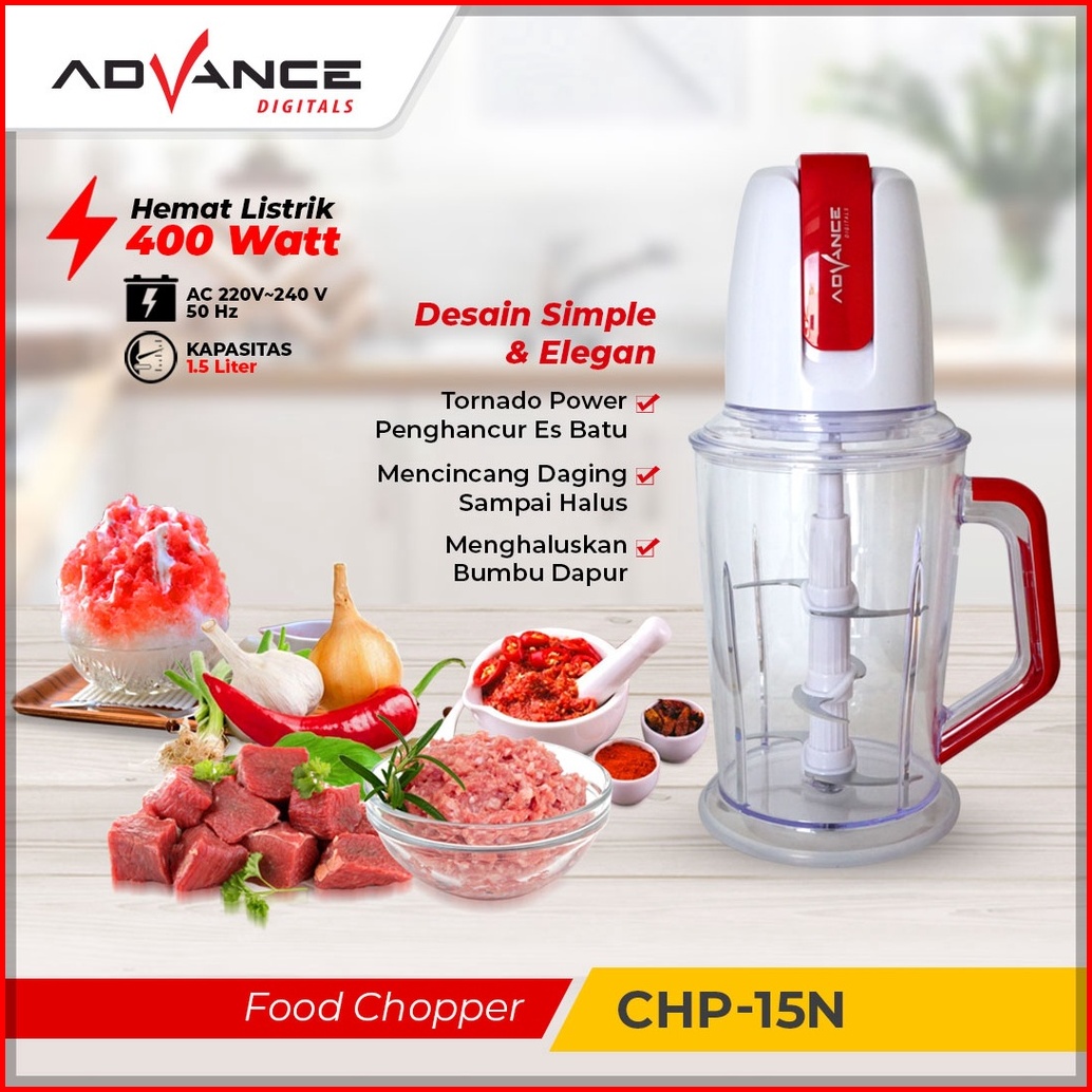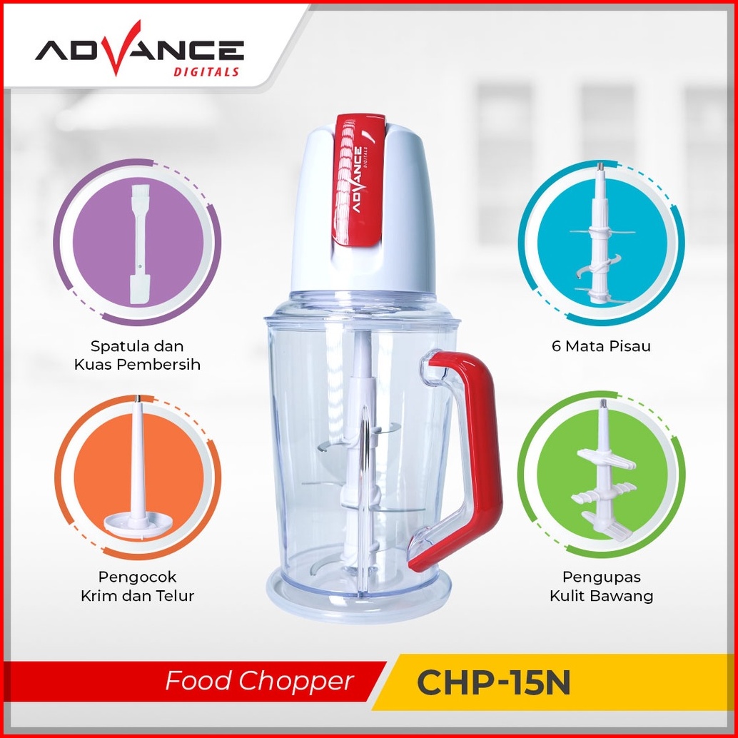 Garansi 1 Tahunadvance 1.5l Food Chopper Elektrik Chp-15n Multifungsi Penutup Gelas Food Grade