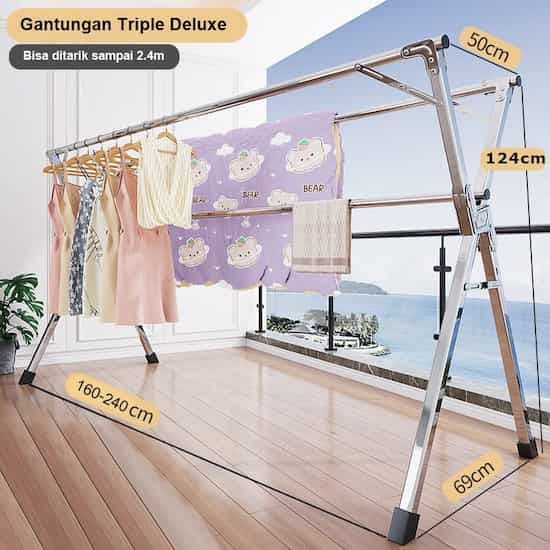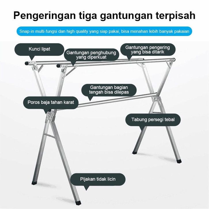 JEMURAN PAKAIAN STAINLESS / GANTUNGAN BAJU MINIMALIS / HANGER BAJU STAINLESS / JEMURAN LIPAT PAKAIAN KUAT PORTABLE TERBA