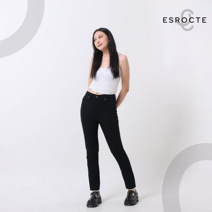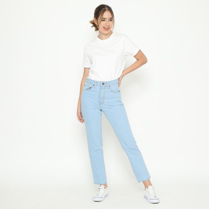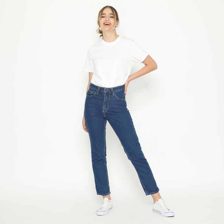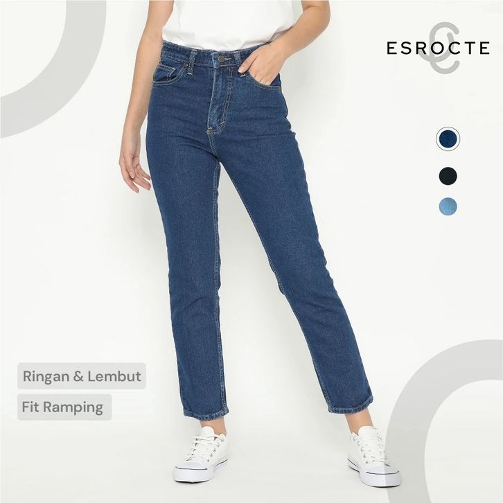 Gratis ongkir - Celana jeans cewe - Esrocte Isla Celana Boyfriend High Waist Jeans Wanita - Navy Hitam Biru Muda 26-38