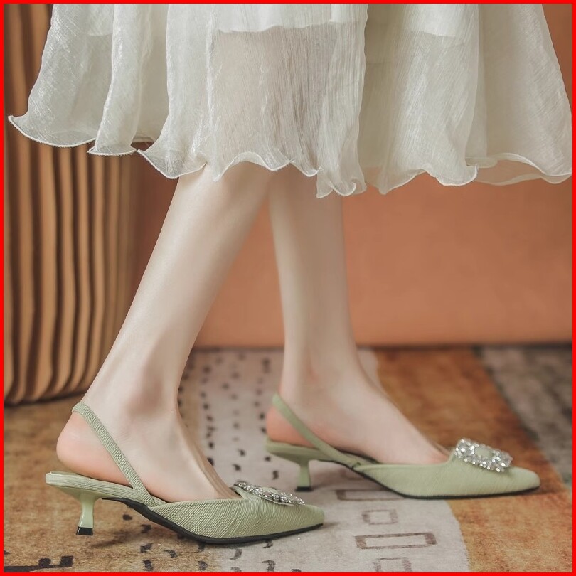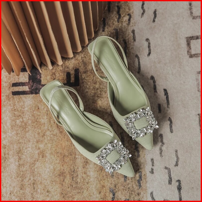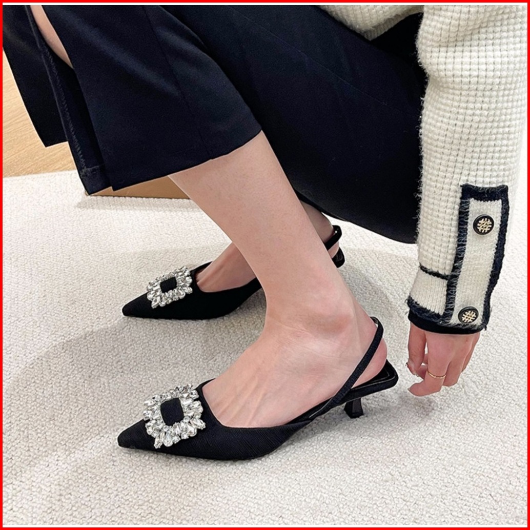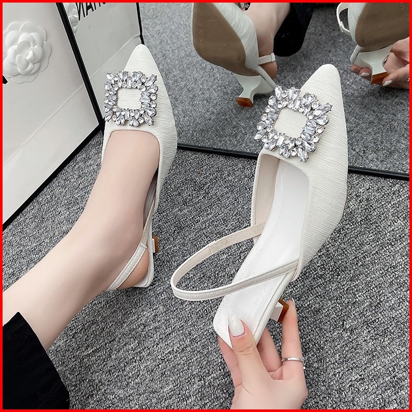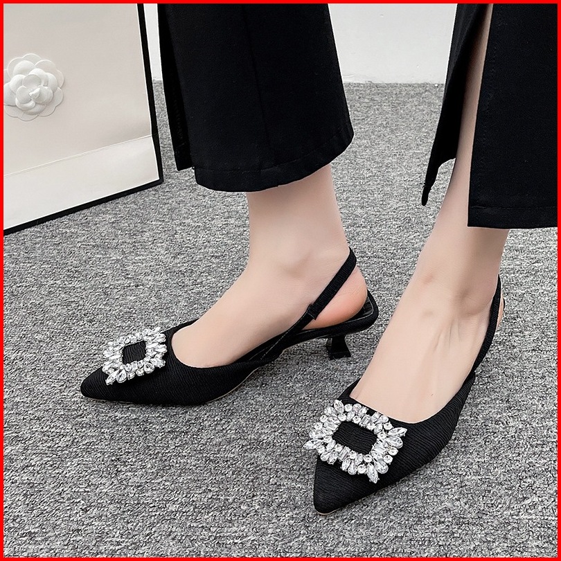 Sepatu Hak Tinggi Wanita 3cm Sandal Elegan Sepatu Kristal Sepatu Tunggal Wanita Korea