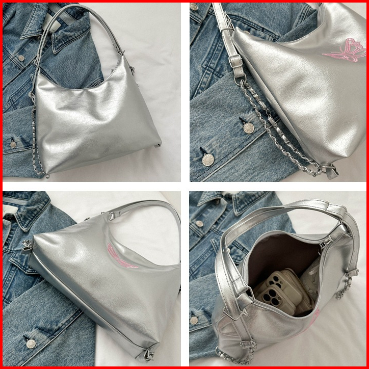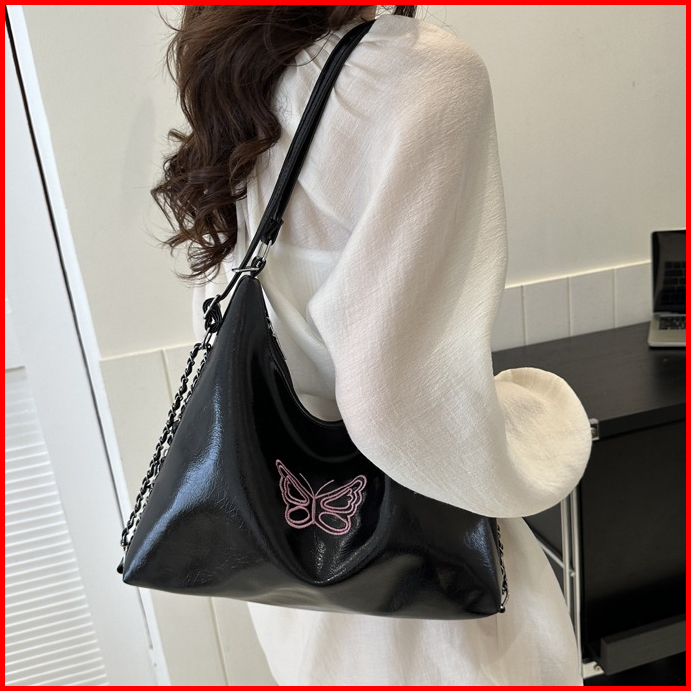 Tote Bag Tas Bahu Fashion Kulit Kupu-kupu Butterfly Shoulder Y2k Bag Tas Bahu Wanita Tas Sekolah