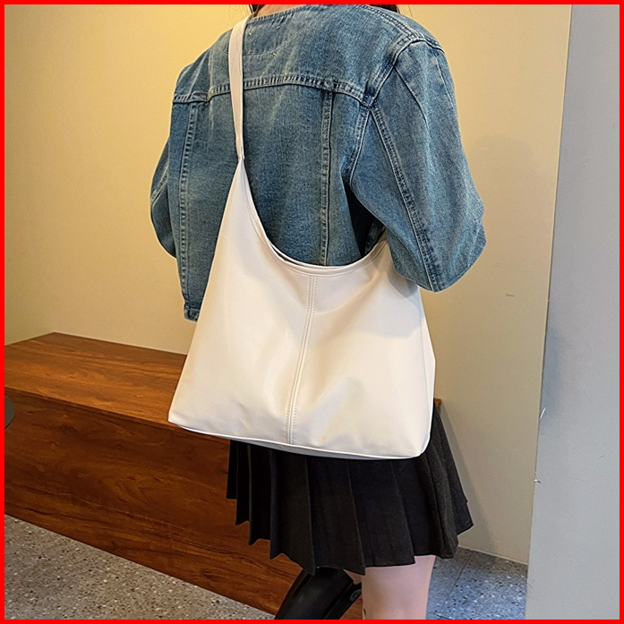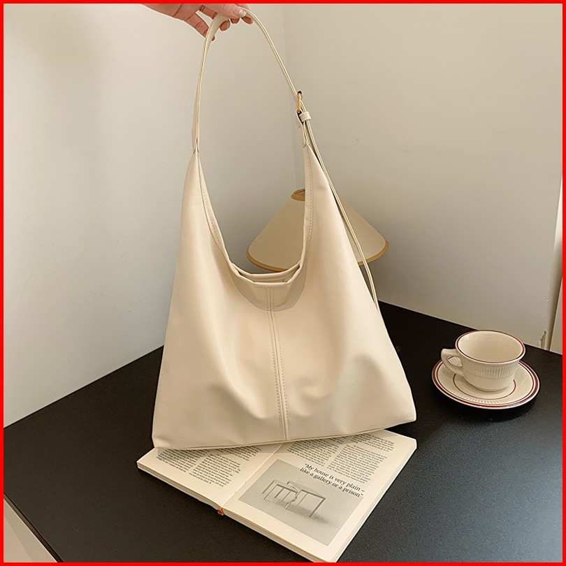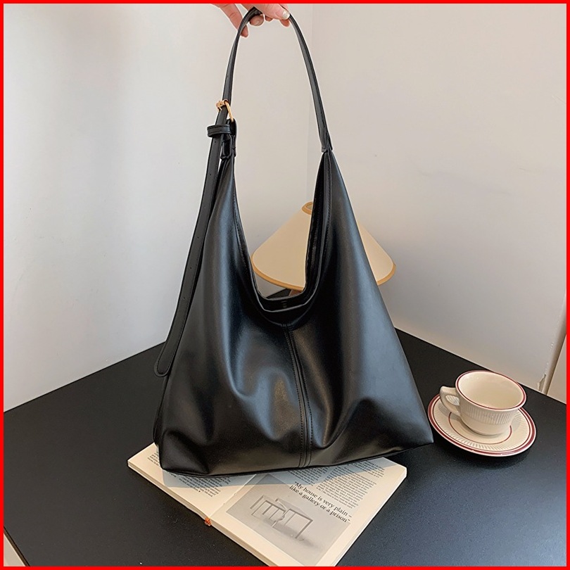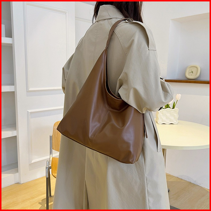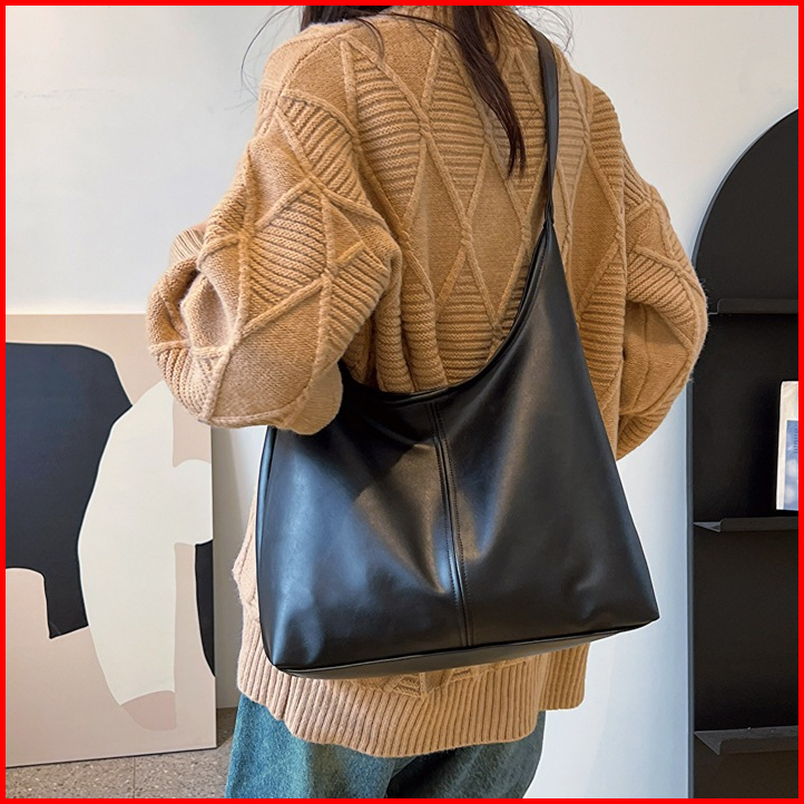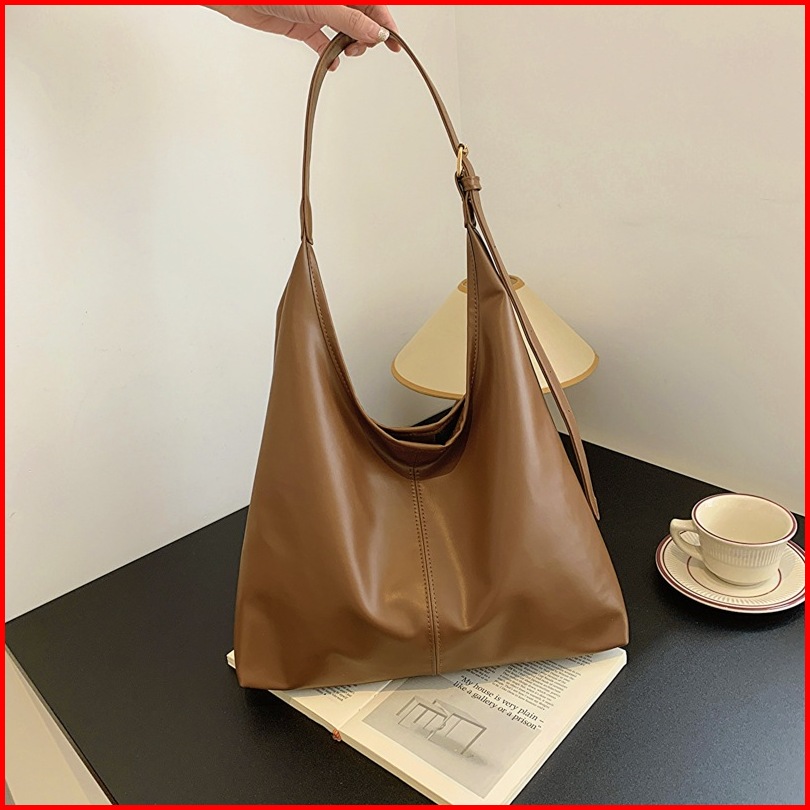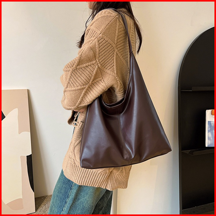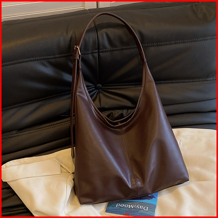 Tote Bag Tas Bahu Retro Kapasitas Besar Tas Jinjing Kulit Lembut Tas Komuter Tas Tangan Tas Ember