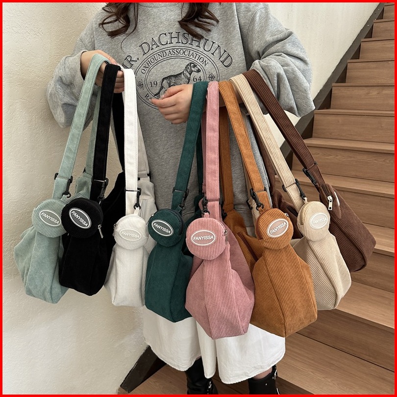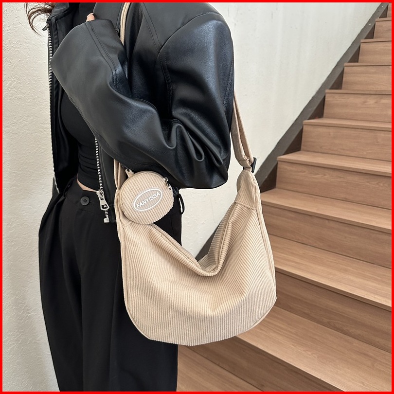 Ready Tas Bahu Wanita Korduroi Tas Selempang Tote Bag Kapasitas Besar Fashion Ratusan Tas Bahu Wanita Tas Komuter Ruang