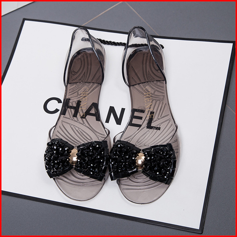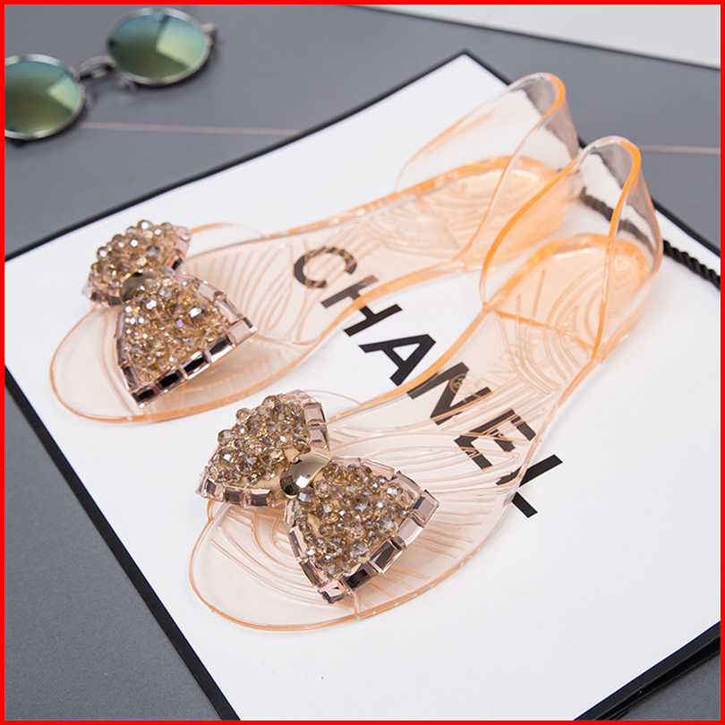 Ready Sandal Wanita Busur Sandal Kristal Wanita Kaca Jelly Sepatu Kaca Transparan Korea Impor Wanita Sepatu Santai Anti-