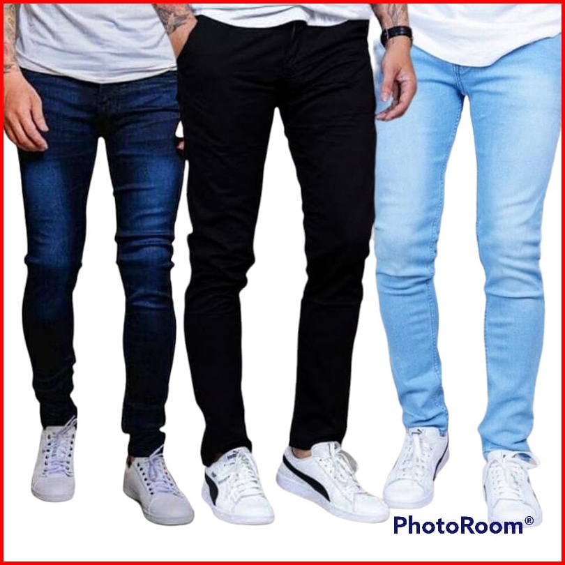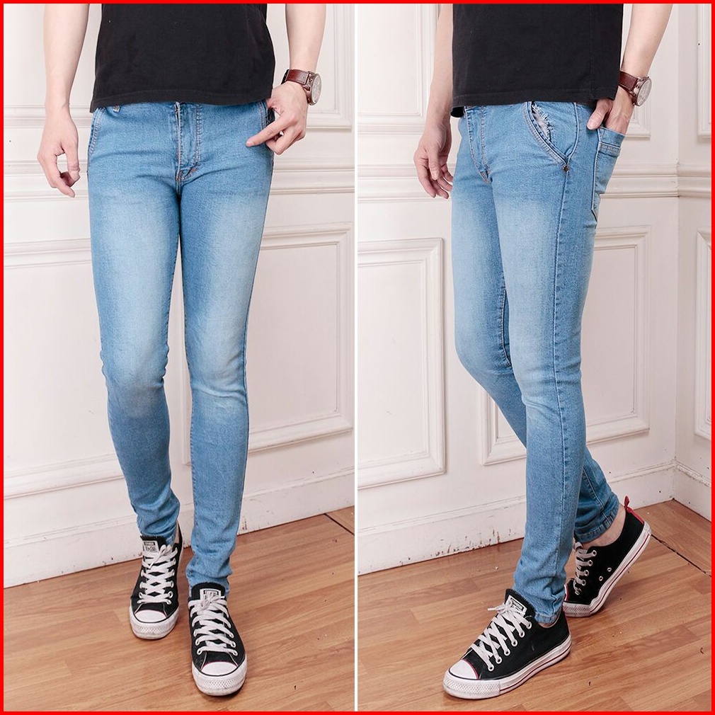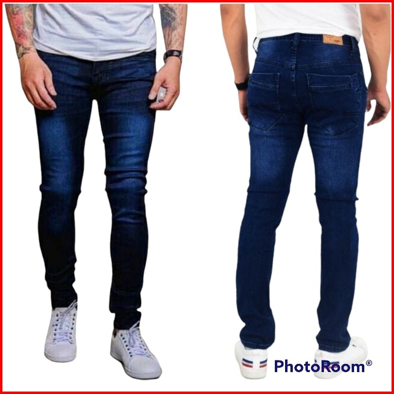 Celana Jeans Pensil Skinny Slim Fit Pria Premium Lepis Size 27-32 Navy Hitam Biru Muda