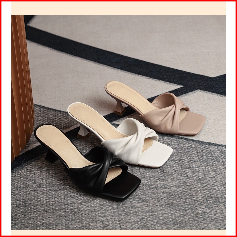 Sepatu Wanita Seksi Square Toe Strappy Strappy High Heels Musim Panas Chunky Heels Sandal Cross Strappy Sandal Musim Pan