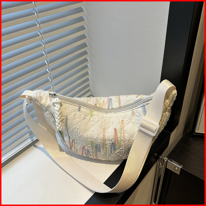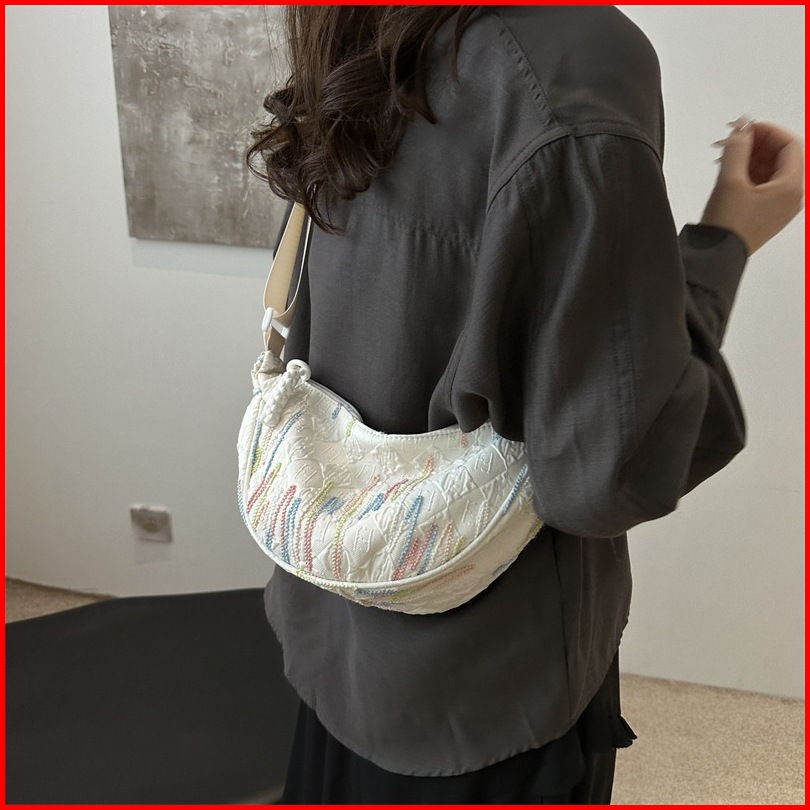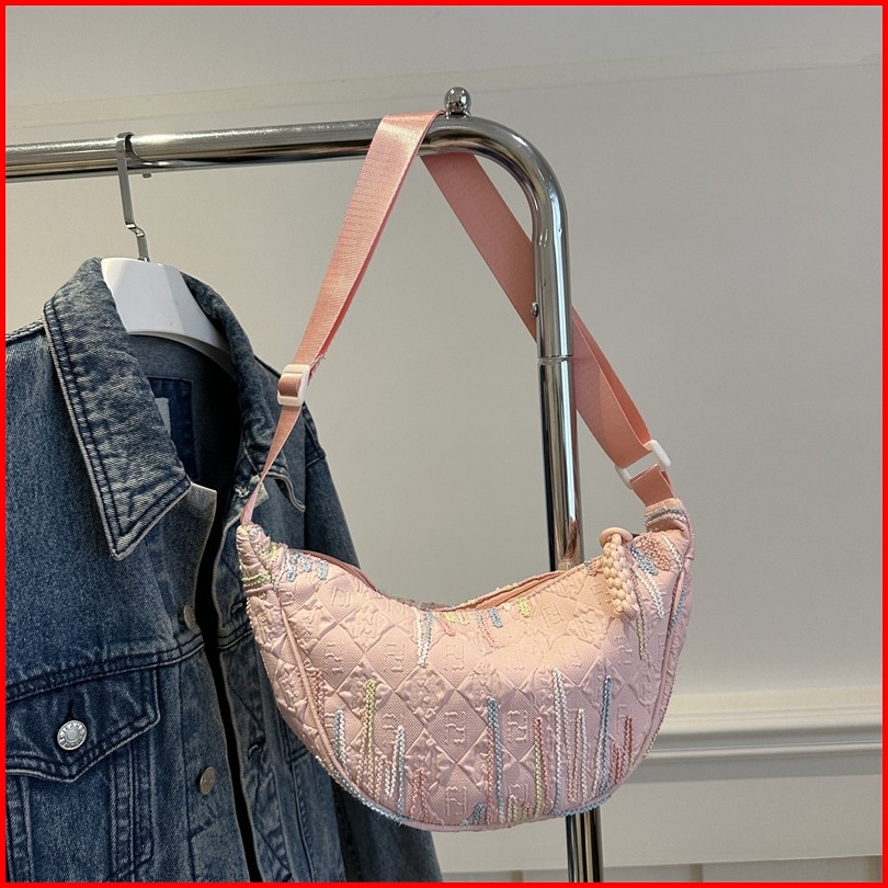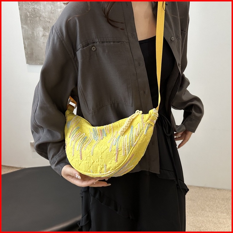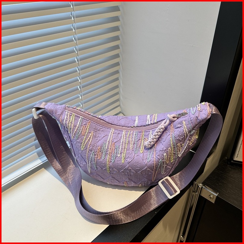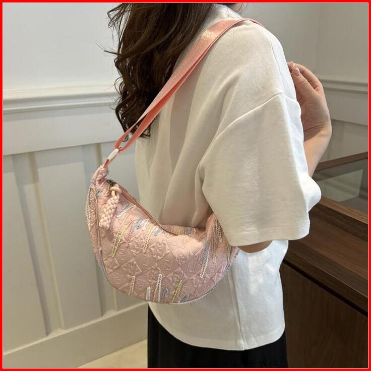 Tas Selempang Korduroi Warna Murni Kapasitas Besar Tas Bahu Retro Retro Fashion Komuter Bergaris Tas Kain Beludru Tas Me
