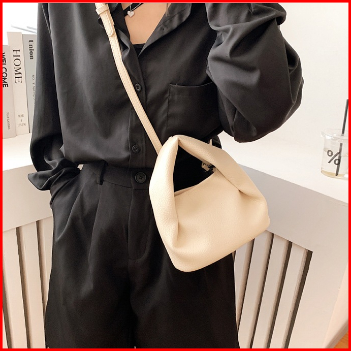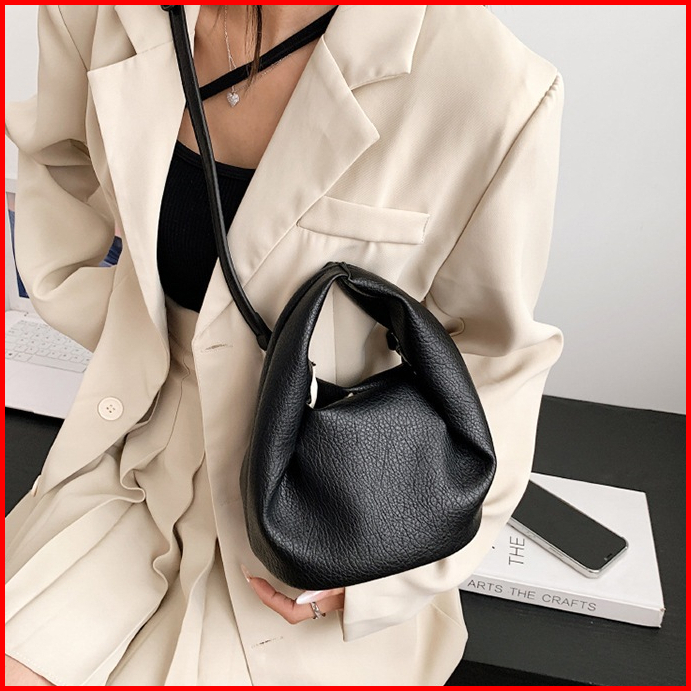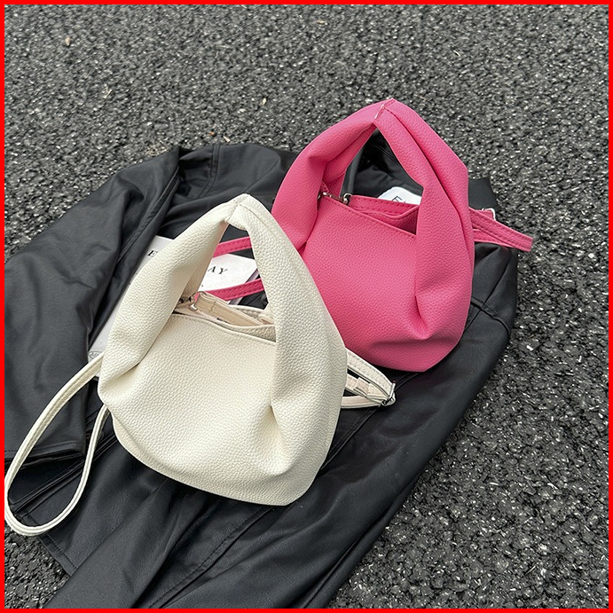 Tote Lipit Awan Tas Awan Tas Ember Tas Tangan Niche Tas Tangan Lipit Kulit Rekreasi Sederhana Selempang Mini Tote Bag