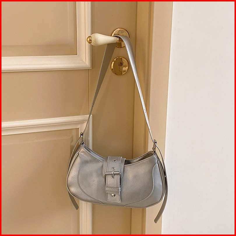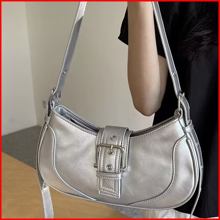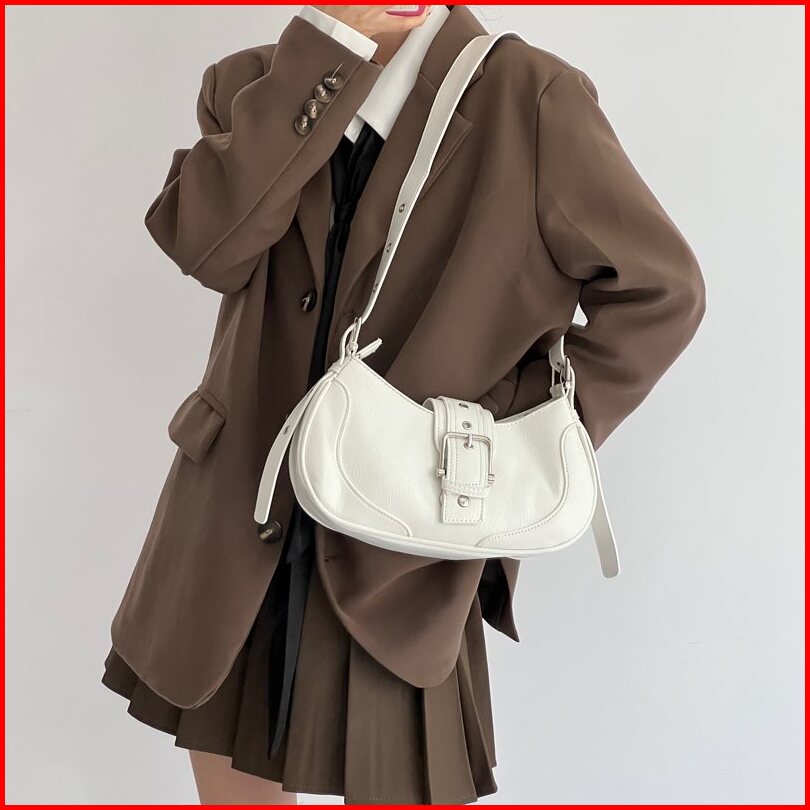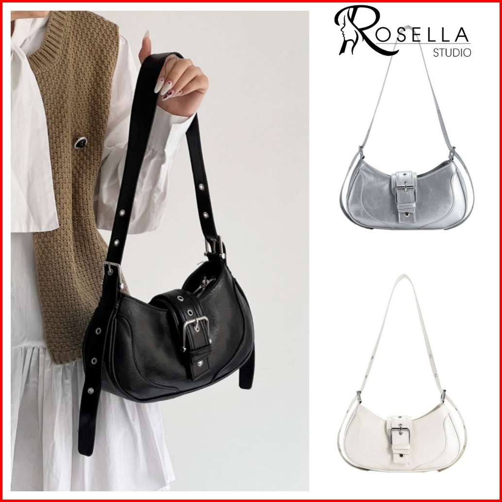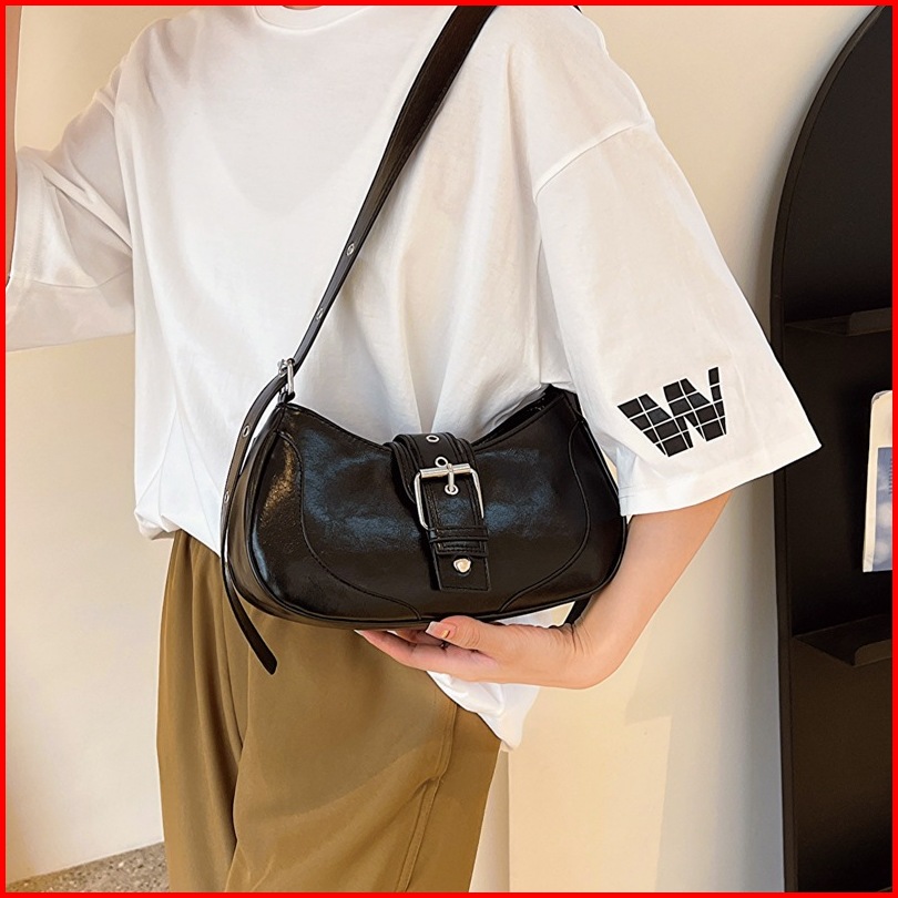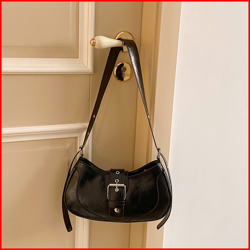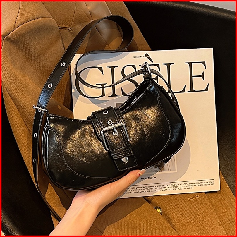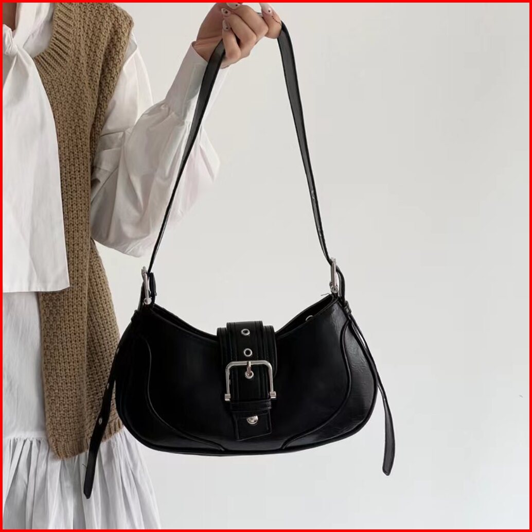 Tas Bulan Sabit Mode Retro Y2k Korea Shoulder Bag Tas Ketiak Hitam Tas Selempang Komuter Wanita
