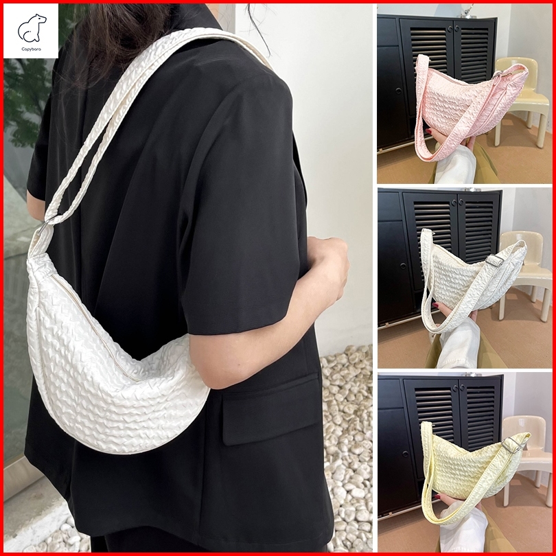 Ready 2024 Tas Bahu Puff Wanita Baru Tas Bahu Kanvas Tas Selempang Wanita Sederhana Tas Korea