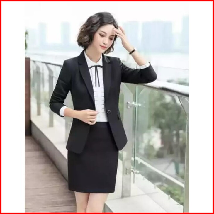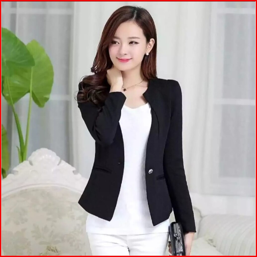 Blazer Formal Wanita Hitam Kantoran Jas Kerja Lengan Panjang