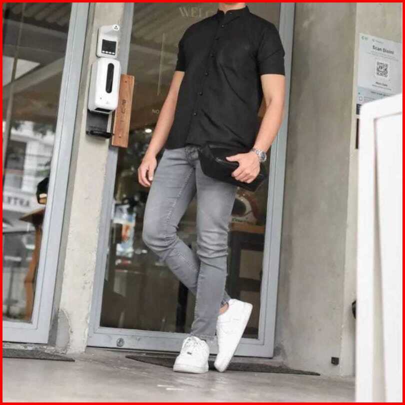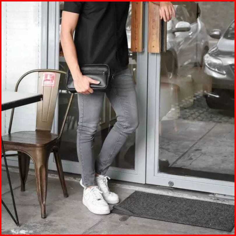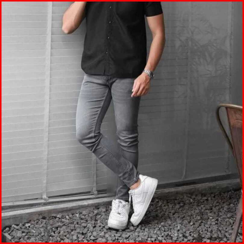 Celana Jeans Pria Slim Fit Pensil Abu Soft Jeans Streecth
