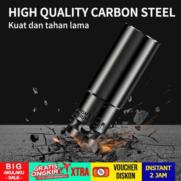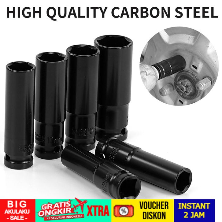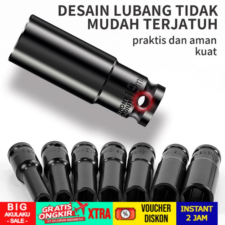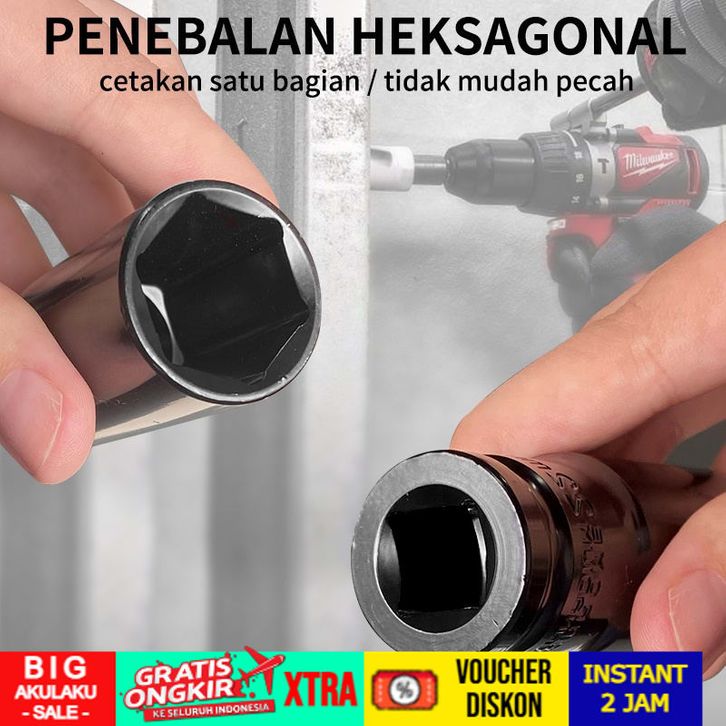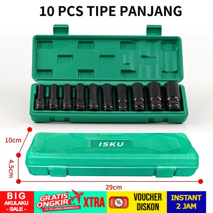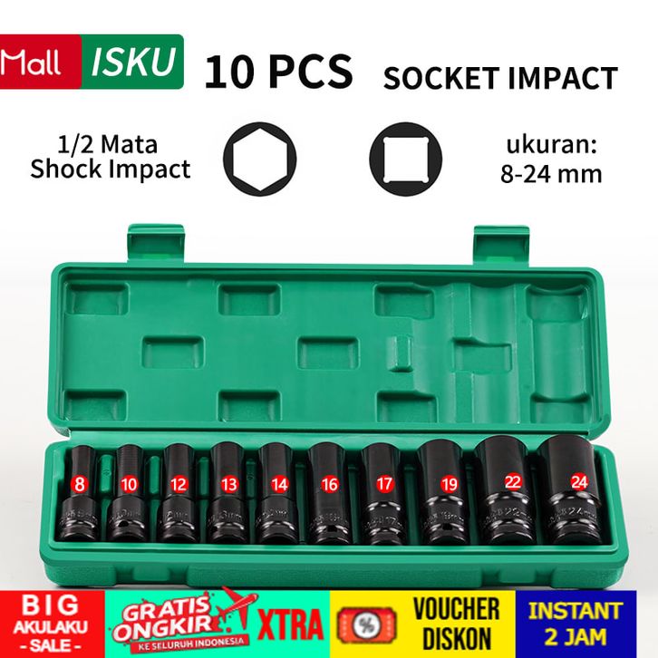 PROMO ISKU 10Pcs Mata Socket 8-24mm 1/2 Inch 6Pt Socket Impact Panjang 8-24mm Bahan Cr-V Impact Socket 10pcs Kunci Sok