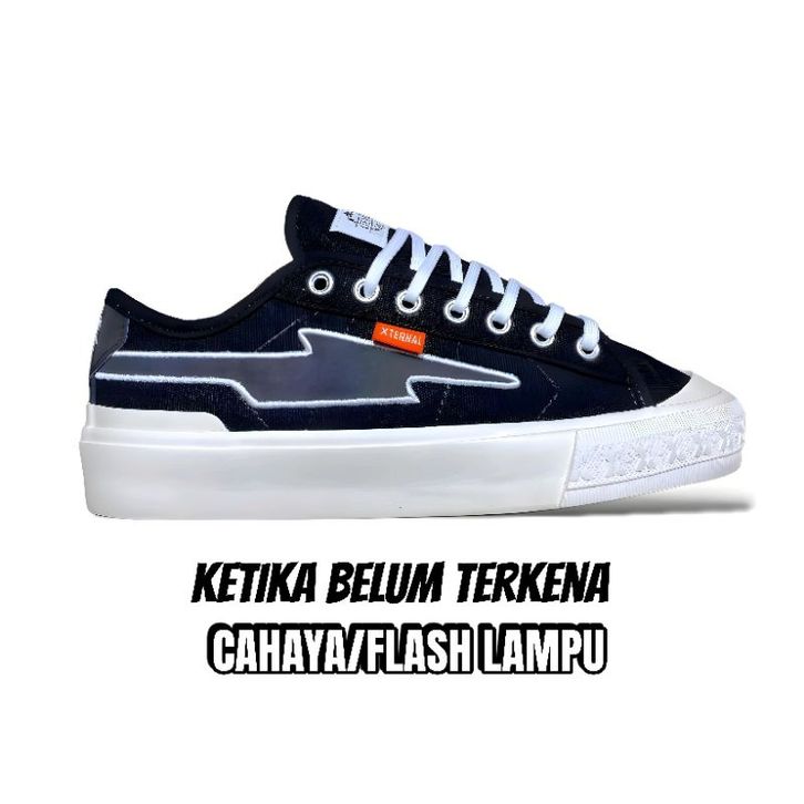 Sepatu Xternal Step Sure - Sepatu Sneakers Pria Original Xternal Mitterns Storm Low Black White Reflective Rainbow