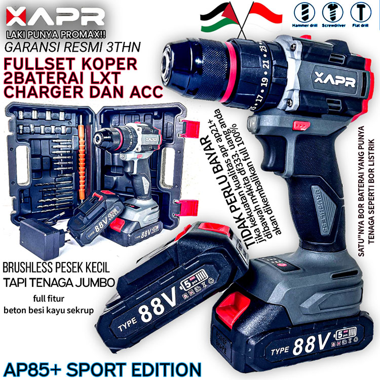 APR JAPAN TYPE AP85+ Bor Baterai 10mm Impact Drill BRUSHLESS keyless auto lock 88v Pengeboran besi kayu sekrup drill