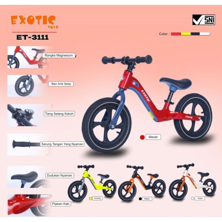 PUSHBIKE SEPEDA KESEIMBANGAN ANAK EXOTIC ET3110 / ET3111 / ET3112 / ET3113 BAN POMPA New