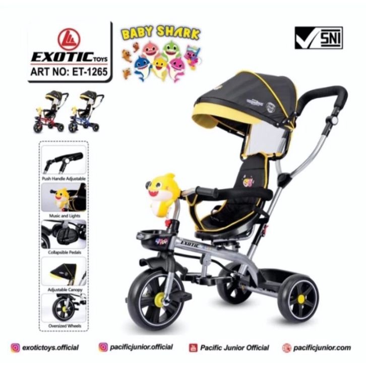 Sepeda Anak Roda 3 Tricycle EXOTIC ET 1265 BABY SHARK Music Dan Lampu New