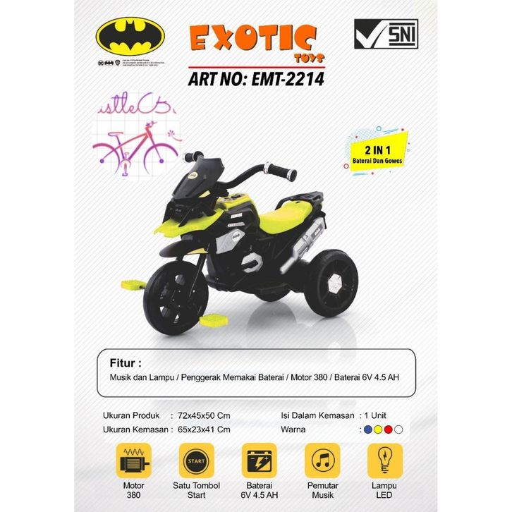 Motor Aki Exotic EMT2214/EMT2234 Ride-On 2in1 Motor Gowes dan Aki New