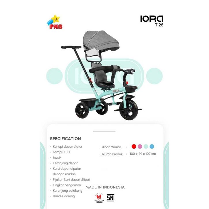 SEPEDA RODA TA ANAK / TRICYCLE IORA T25 DENGAN PENDORONG DAN KURSI BISA DIPUTAR New