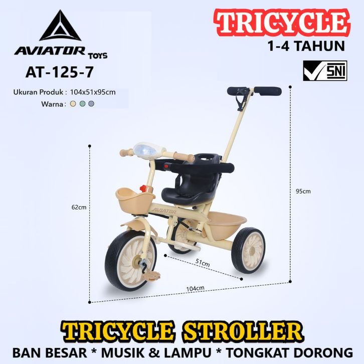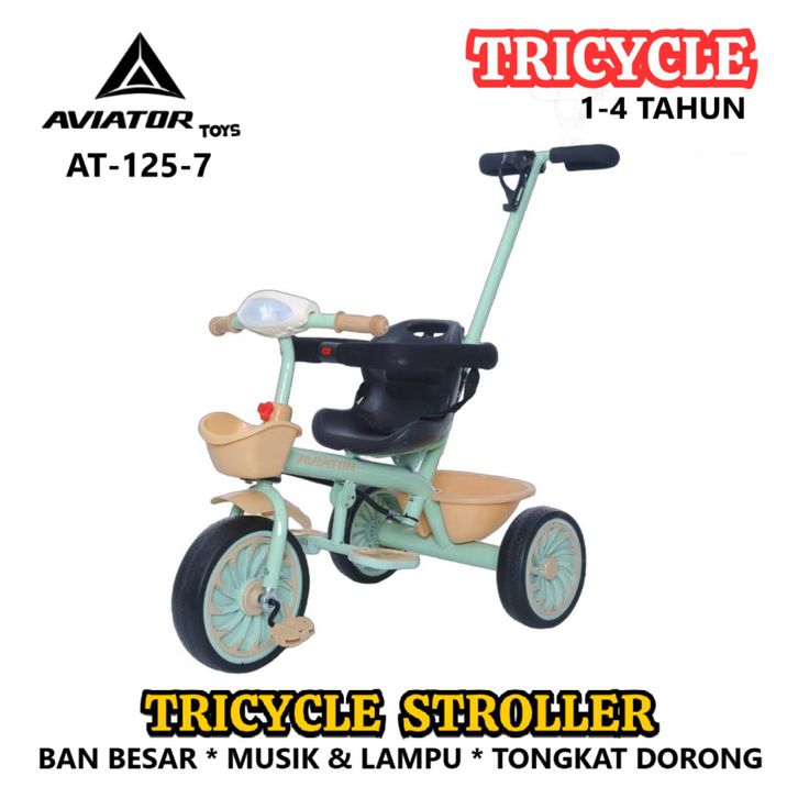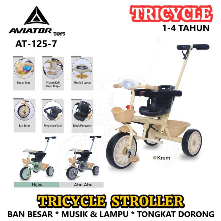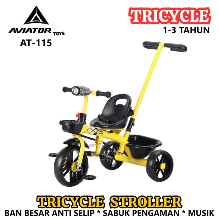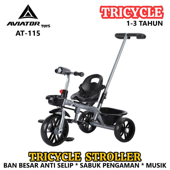 Sepeda Roda Ta Anak Aviator AT115 AT125 Ban Besar Anti Selip Tongkat Dorong Tricycle Stroller New
