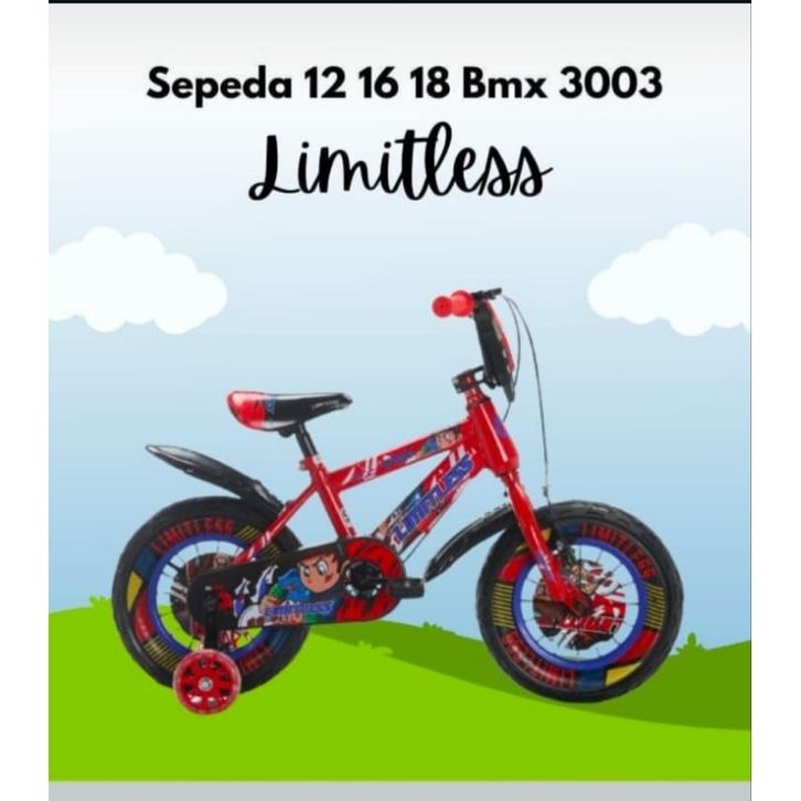sepeda anak bmx 16 limitless ban 3.0 roda samping nyala&ad musik lampu New