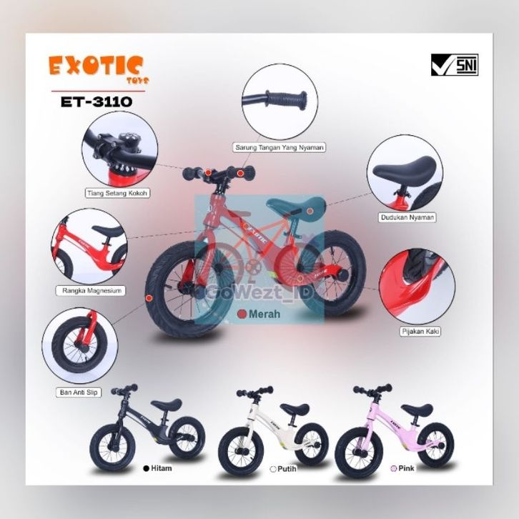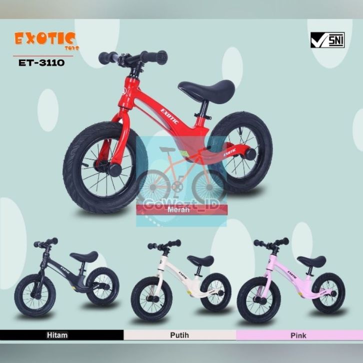 Balance Bike Push Bike Sepeda Keseimbangan Anak EXOTIC ET-3110 Ban Karet Pompa Hh Quality New