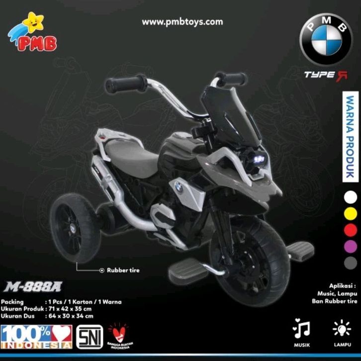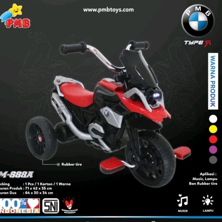 Free Pels Ban Sepeda Motor Anak PMB MOTOR TYPE 888-A GOWES 888 AKI Baterai Mainan Anak Tricycle M888
