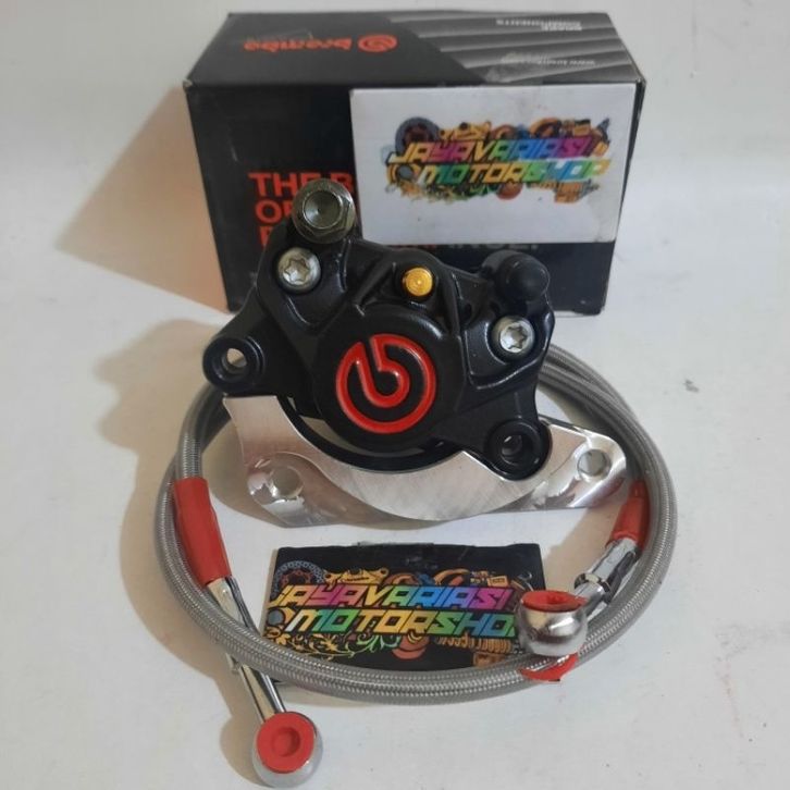 Paketan MURAH BANGET Kaliper Brcmbo Big Logo 2Piston 2P Babet + Breket 2P Disc Standar 200mm + Selang Rem Silver Depan