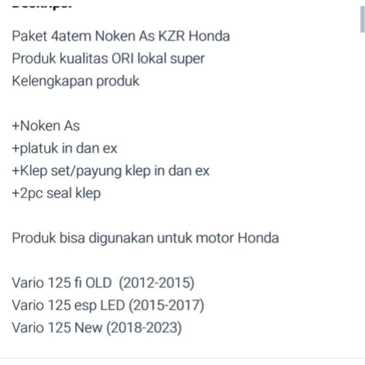 Paket 4aitem Noken As KZR Honda Vario 125 Fi OLD Vario 125 esp Vario 125 New, ORI lokal