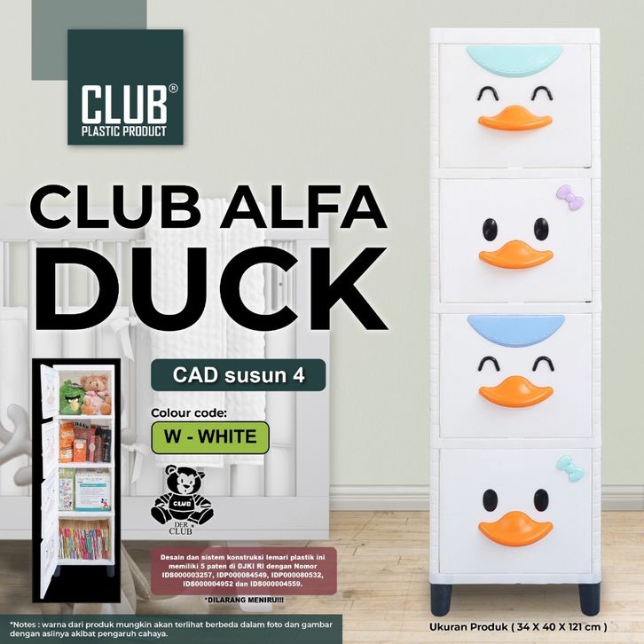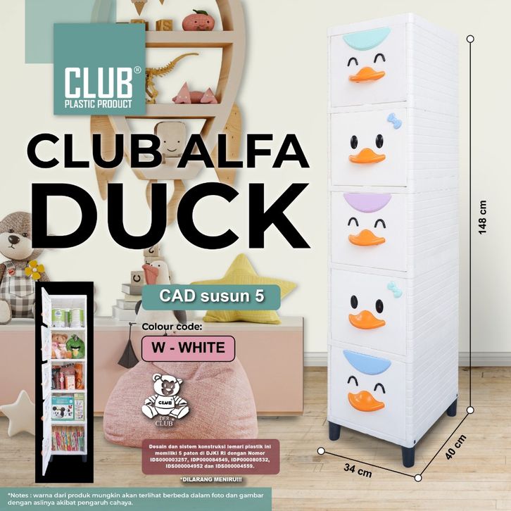 Lemari Karakter Anak Lemari Pakaian Plastik CLUB ALFA DUCK CAD Laci Susun 2 3 4 5 Pintu Boneka Kuning Putih Bebek