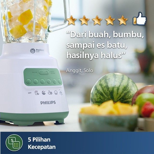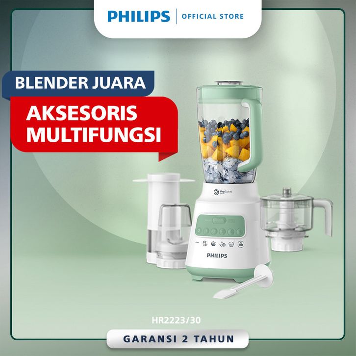 PHILIPS BLENDER 5000 SERIES HR2223/30 JAR PLASTIK 2 L MULTIFUNGSI -CHOPPER, DRY MILL, FILTER- PROBLEND CRUSH TECHNOLOGY