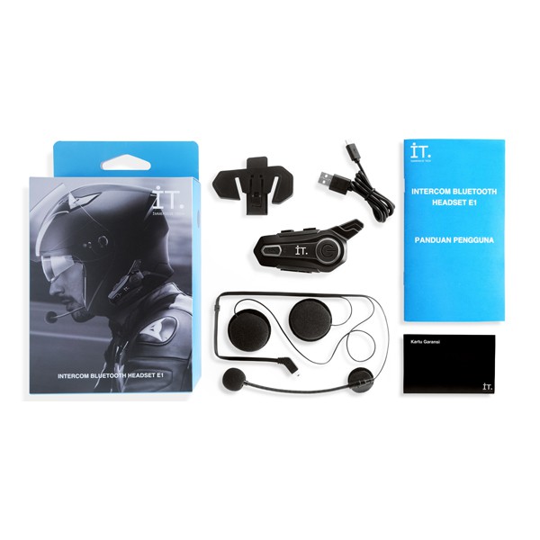 DISKON 70% IT Intercom Bluetooth Headset E1-Black INTERCOM/INTERKOM MURAH TERLARIS GRATIS ONGKIR