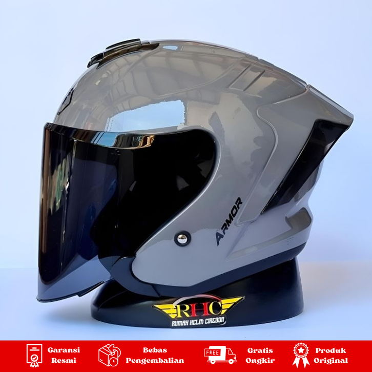 helm JS armor half face solid sni warna dark grey gloss