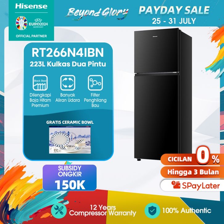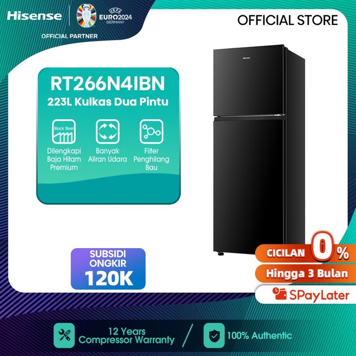 HISENSE KULKAS 2 PINTU KAPASITAS 223L RT266N4IBN - BLACK【NO FROST + MULTI AIR FLOW】【DEODORIZING FILTER】【EASY TO USE】