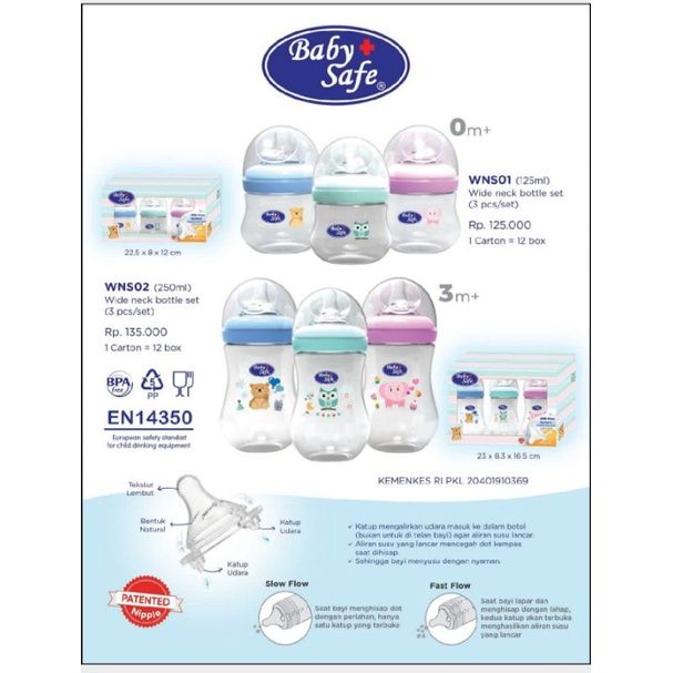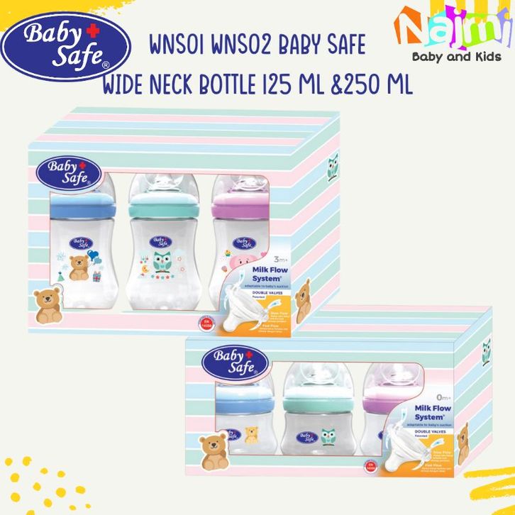 PAKET SET ISI 3 WNS01 WNS02 Baby Safe Wide Neck Bottle Karakter 125 ml 250ml Botol Susu Bayi Babysafe TANPA DP
