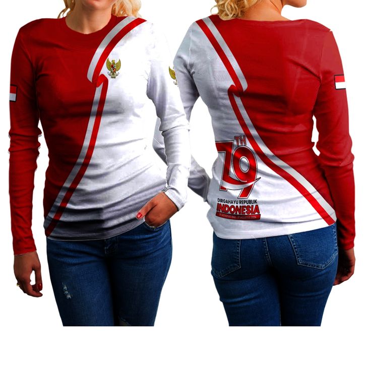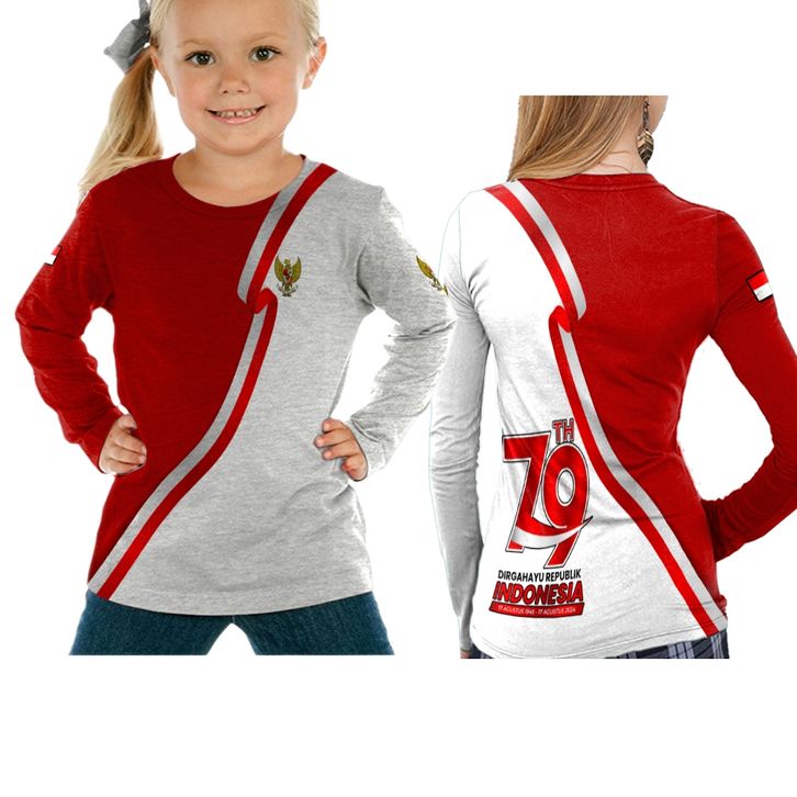 Baju Agustusan 2024 Baju 17 Agustus Hut RI Ke-79 /Kaos T-shirt Wanita Lengan Panjang /Kaos Jersey Kemerdekaan Indonesia